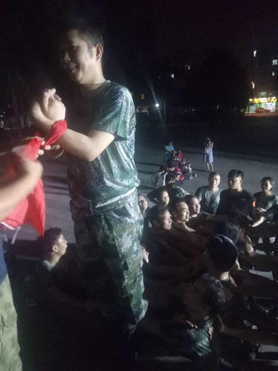 每一位從背摔架上勇敢倒下的隊員下來后要擁抱每一位隊員,每一位隊員也要給倒下的隊員鼓勵